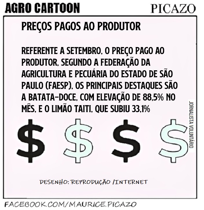 O mais recente Relatório de acompanhamento mensal dos preços pagos ao produtor da Federação da Agricultura e Pecuária do Estado de São Paulo (FAESP), referente a setembro de 2025, aponta variações expressivas nos preços pagos ao produtor paulista. Entre os principais destaques positivos estão a batata-doce, com elevação de 88,5% no mês, e o limão taiti, que subiu 33,1% em relação a agosto. Outros produtos também apresentaram variações positivas, como mandioca, que teve aumento de12,9%, café arábica, com preço 11,4% maior, e feijão cores, também com aumento de 11,4% no preço pago ao produtor.