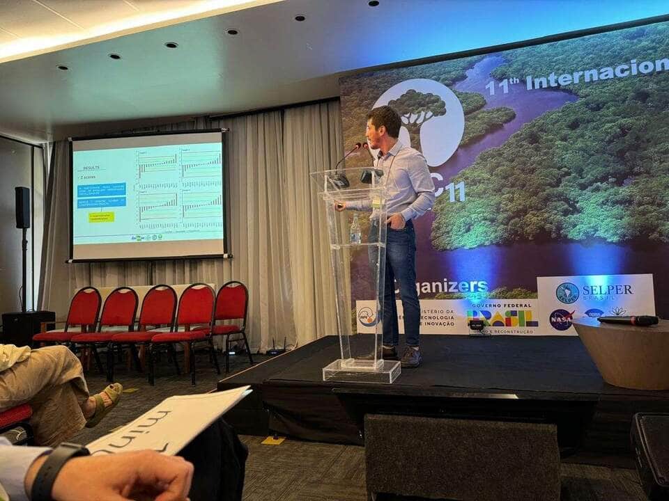 Entre as pesquisas destacadas, o estudo “ Teste de proficiência em carbono total do solo: rede colaborativa e adequação de resultados ” foi apresentado pelo colaborador Ruan Carnier. O trabalho, desenvolvido por Cristiano Andrade, Alfredo Luiz, Juliana Marcatto, Marcelo Saldanha e Viviane Bettanin, todos da Embrapa Meio Ambiente, divulgou os resultados do primeiro ano do Ensaio de Proficiência em Carbono do Solo (EPCS), realizado no final de 2023 em parceria com a Bayer Crop Science.