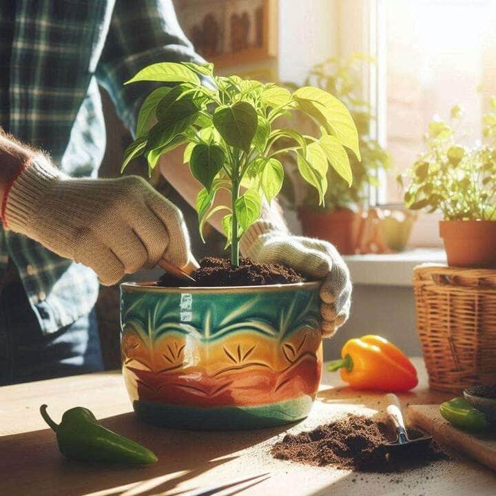 Confira a seguir o passo a passo de como plantar pimenta em vaso: a primeira etapa é preparar a terra. Para isso, misture algum substrato, como húmus de minhoca, na sua terra; em seguida, coloque essa terra dentro do vaso; Então, faça um buraco de aproximadamente 1 cm de profundidade e coloque a semente; Caso você queira plantar mais de uma semente, certifique-se de que elas estão a 30 cm de distância uma da outra. Na maioria dos vasos, é possível plantar até três sementes; Depois, tampe o buraco com a terra.