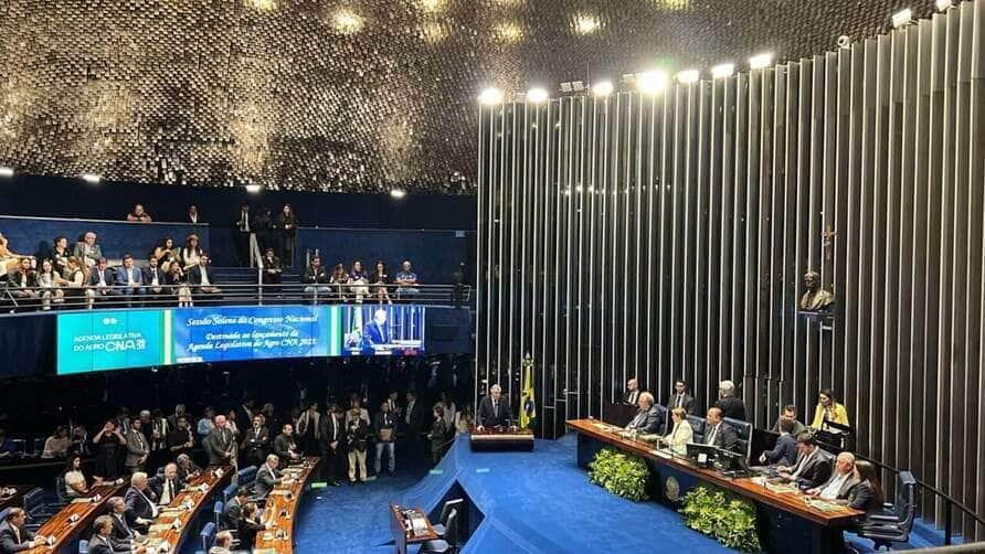 A Federação da Agricultura e Pecuária de Mato Grosso (Famato) marcou presença na sessão solene de lançamento da Agenda Legislativa do Agro 2025, da Confederação da Agricultura e Pecuária do Brasil (CNA). A solenidade aconteceu na manhã desta quarta-feira (26/03), no plenário do Senado Federal, em Brasília, reunindo representantes do setor agropecuário e autoridades para discutir as principais pautas em tramitação no Congresso Nacional que impactam o agronegócio brasileiro.