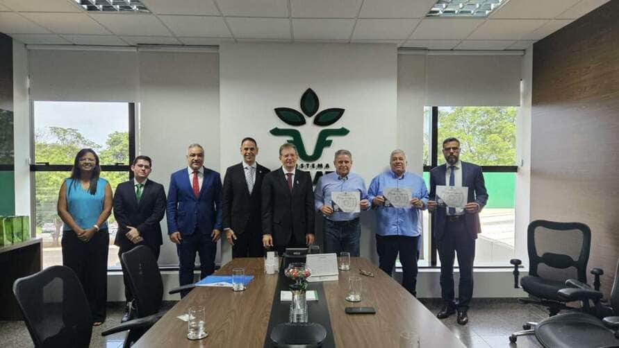 A Federação da Agricultura e Pecuária de Mato Grosso (Famato), o presidente Vilmondes Sebastião Tomain e o gestor jurídico Rodrigo Bressane foram homenageados individualmente com a “Moção de Aplausos” concedida pela Congregação da Faculdade de Direito da Universidade Federal de Mato Grosso (UFMT). A solenidade aconteceu na manhã desta segunda-feira (27/01), no Edifício Famato, em Cuiabá, e reconheceu o comprometimento da entidade e de seus líderes com a promoção de parcerias que fortalecem o conhecimento acadêmico, impulsionam o setor agropecuário e beneficiam a sociedade como um todo.