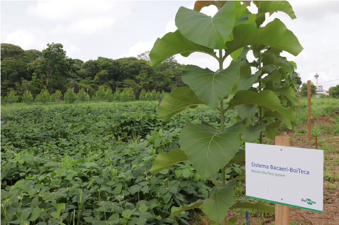 A integração da pecuária de corte com o plantio de teca (Tectona grandis) para tornar a criação de gado mais sustentável e expandir a silvicultura foi uma proposta apresentada nesta terça-feira (18), na AgriZone, em Belém. O Sistema Bacaeri – BoiTeca foi lançado pela Embrapa Agrossilvipastoril (MT), em maio deste ano, como uma modalidade de integração pecuária-floresta, ou silvipastoril.