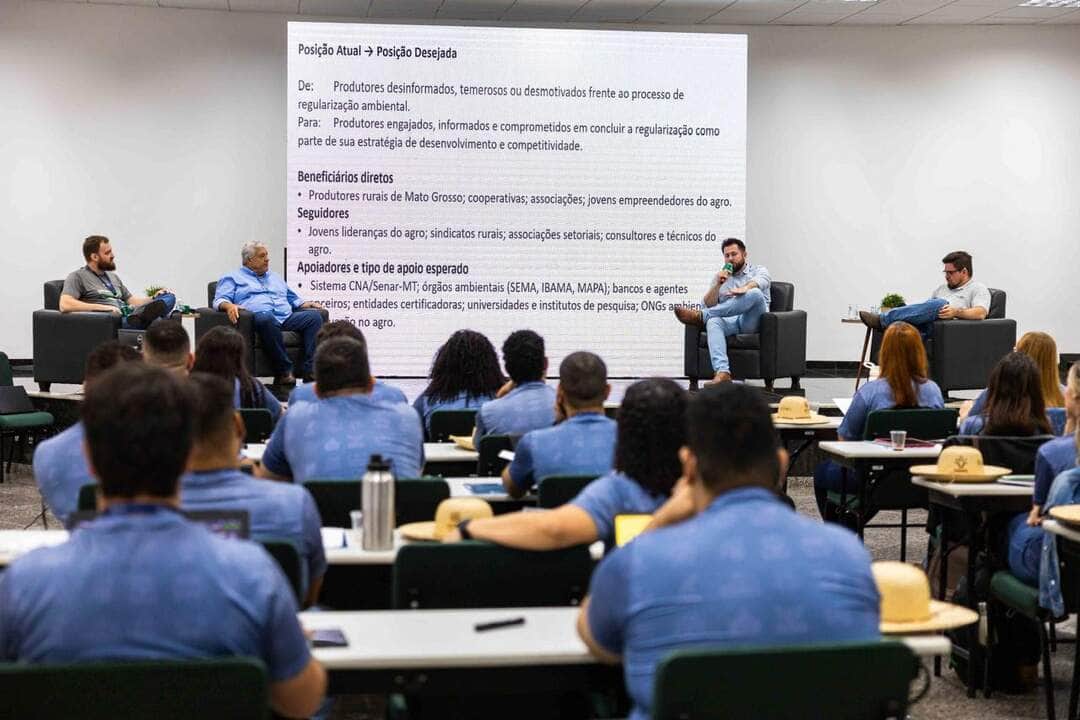 A primeira dinâmica do encontro envolveu a participação do diretor da Famato, Ronaldo Vinha, do superintendente do Senar/MT, Marcelo Lupatini, do gerente de Educação Formal do Senar/MT, Pedro Souza e do coordenador Rafael Flores. Os representantes do Sistema Famato/Senar tiveram a missão de esclarecer para o grupo os desafios regionais divididos em duas temáticas, regularização ambiental e qualificação profissional com permanência no campo. “Esse fim de semana eles conheceram os desafios aqui e os dirigentes mostraram quais os pontos devem ser priorizados, qual a realidade do estado em relação a estes temas”, explicou Camilla Diniz, gestora regional do Programa CNA Jovem em Mato Grosso.