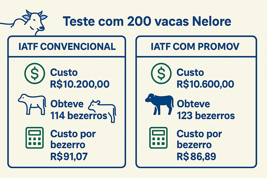 Com mais de 230 milhões de cabeças de gado, o rebanho bovino brasileiro é o maior do mundo, e a IATF é uma das principais ferramentas utilizadas para aumentar a produtividade e a qualidade genética dos animais. Nesse cenário, tecnologias como o Promov representam um avanço importante, ao permitir maior eficiência sem a necessidade de insumos novos ou caros.