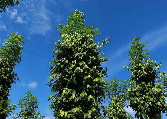 Ao usar gliricídia (Gliricidia sepium L.), espécie de árvore leguminosa, como tutor vivo para o crescimento da pimenteira-do-reino, pesquisadores confirmaram que o sistema reduz em até 46% os custos de implantação por hectare, consome metade da água usada no modelo tradicional e ainda melhora a qualidade do produto. Esses resultados estão publicados nos mais recentes estudos conduzidos pela Embrapa que consolidam o sistema de produção sustentável de pimenta-do-reino na Amazônia, e que será apresentado na Jornada pelo Clima, na Conferência das Nações Unidas sobre as Mudanças Climáticas 2025 (COP 30), em novembro deste ano, em Belém (PA).