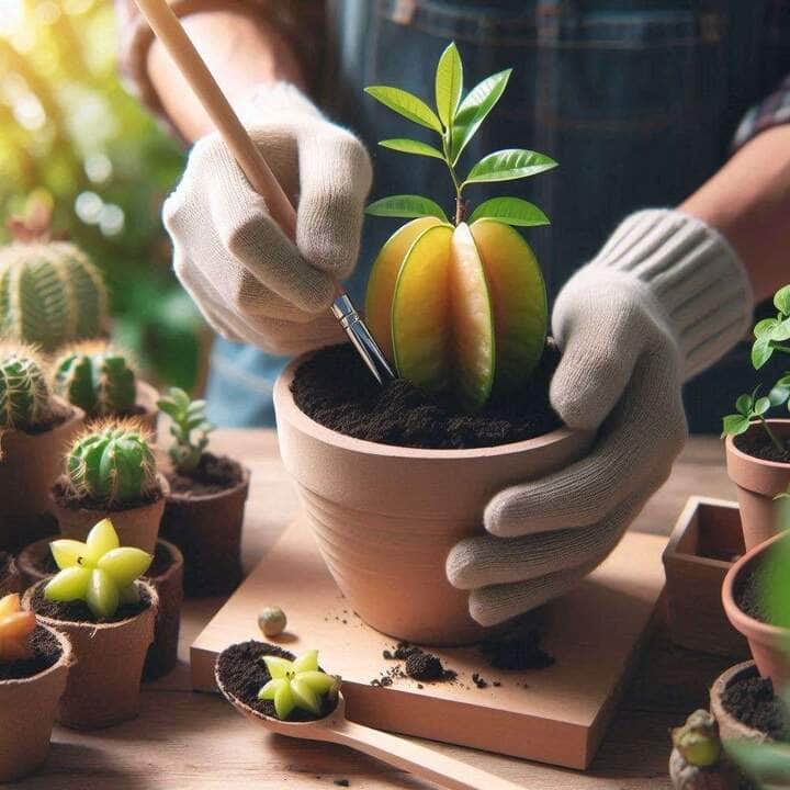 Quanto à árvore da carambola (a ), deve ser cultivada a sol pleno, em solo bem drenado e rico em matéria orgânica (adicione uma parte de terra, uma de areia e duas de esterco de vaca bem curtido). Ao semear, não afunde as sementes mais do que 2 cm de profundidade, caso contrário elas acabarão apodrecendo antes de se desenvolver.