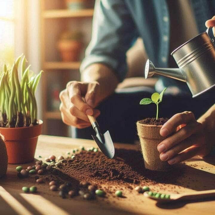 Quando a planta estiver com 20 cm de altura, transfira-a para um vaso ou horta de feijão;