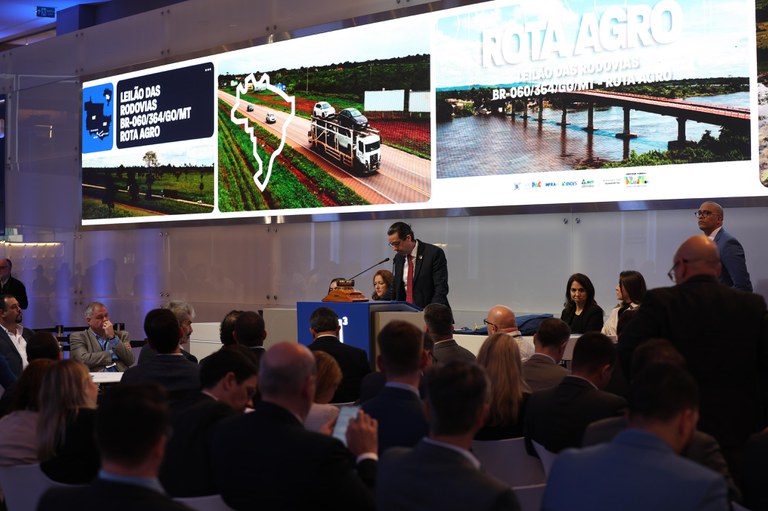 Um dos trajetos mais importantes do país, utilizado pela agropecuária, a Rota Agro teve seu leilão realizado nesta quinta-feira (14), em São Paulo. Com 502,8 km de extensão, formada pelas BR-060/364/GO e BR-364/GO/MT, a rota liga Rio Verde (GO) a Rondonópolis (MT) e é estratégica para o escoamento da produção agrícola e industrial da região Centro-Oeste, caracterizada pelo intenso tráfego de veículos de carga e passeio.