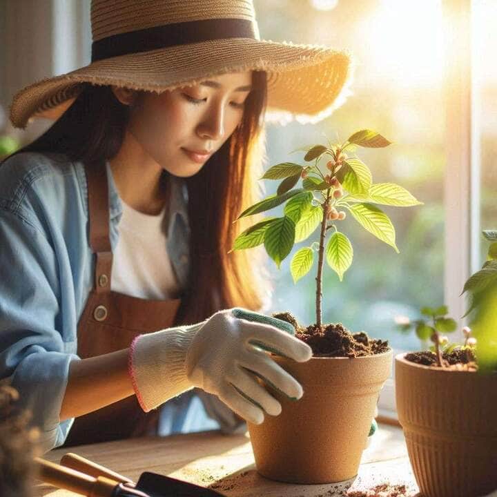 Após escolher o local em seu jardim, deve fazer um buraco com cerca de 30 cm de profundidade e plantar a muda, depois basta preencher o espaço que sobrou com a terra e fixar bem a planta. Em casos de plantação em vasos, deve utilizar as sementes de cereja. O primeiro passo é preencher o fundo do vaso com cascalho ou folhas mortas secas para auxiliar com a drenagem.