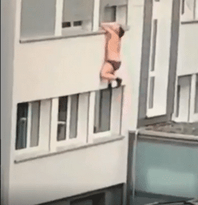 (VÍDEO) Homem é flagrado de cueca pulando de prédio da suposta amante para escapar de flagrante