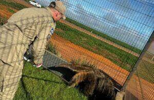 Bombeiros resgatam tamanduá-bandeira em empresa de máquinas agrícolas