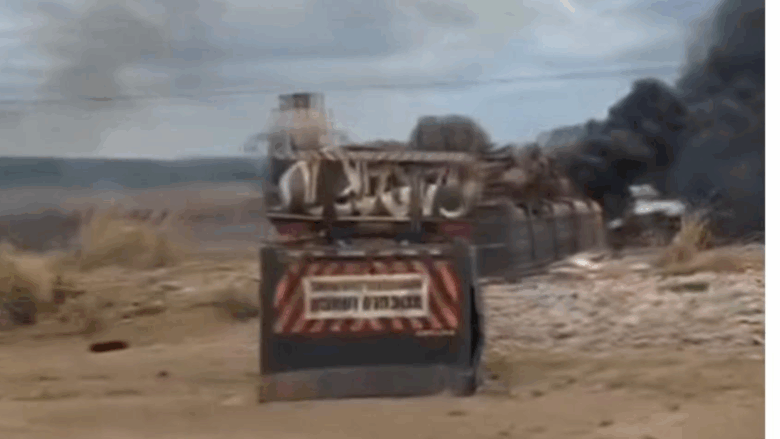 O caminhão foi encontrado fora da pista, em uma faixa de domínio, com o fogo já se alastrando pela cabine. O corpo do condutor foi localizado no interior do veículo.