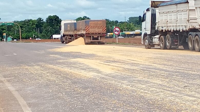 Uma das Scanias, que havia carregado em Lucas do Rio Verde e seguia para o descarregamento, teve a última composição atingida pela cabine da outra Scania. O impacto danificou parte da estrutura e provocou o derramamento de parte da carga sobre o asfalto.
