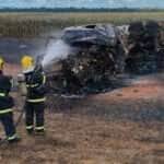 Após isolar a área e garantir a segurança da operação, os bombeiros iniciaram o combate ao incêndio e o resfriamento da cabine do veículo. Durante os trabalhos, foi localizado um corpo carbonizado no interior da cabine, possivelmente do motorista.
