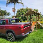 Um dos principais destaques da Montana 2026 está no aproveitamento de espaço. A cabine acomoda cinco ocupantes com bom espaço para pernas e cabeça, enquanto a caçamba de 874 litros demonstrou versatilidade ao transportar todos os itens necessários para a viagem até Alumínio. A caçamba Multi-Flex facilitou a organização da carga, com pontos de fixação, divisórias e acesso simplificado pela tampa traseira com alívio de peso.