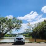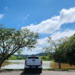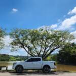 Na chegada a Serra Negra, percorri pequenos trechos fora de estrada em áreas de acesso rural. O sistema de tração 4×4 e os pneus All Terrain ajudaram na progressão por caminhos com trechos de terra e pequenas irregularidades. Nessas condições, a altura livre do solo e o curso da suspensão são fatores que contribuem para o deslocamento da picape.