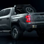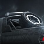 Na traseira, o destaque é o estepe aparente fixado em um Rambar exclusivo, que também abriga luzes de LED de longo alcance. Lanternas traseiras em LED, emblema Ram na tampa e para-choque com ganchos de reboque completam o conjunto. O modelo recebeu pintura especial com grafismos que simbolizam força e resistência.
