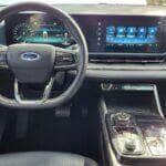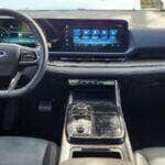 Ao entrar no veículo pela primeira vez, percebi a presença do Acesso Inteligente, que detecta a chave nas proximidades e permite destrancar o carro sem precisar tirá-la do bolso. O console central conta com o seletor de marchas rotativo, o chamado “Rotary Shifter”, que além de liberar espaço e trazer praticidade, ativa automaticamente o modo estacionamento ao desligar o carro e abrir a porta do motorista. Esse recurso se mostrou útil em paradas rápidas em São Paulo, como em estacionamentos e paradas de semáforo.