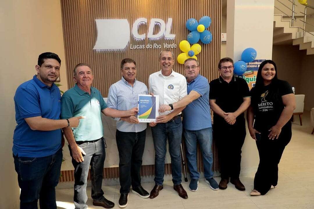 O prefeito de Lucas do Rio Verde e candidato à reeleição, Miguel Vaz (Republicanos) e o candidato a vice-prefeito, o empresário Joci Piccini (União Brasil) receberam, nesta segunda-feira (09), o manifesto do varejo das entidades empresariais que integram a Câmara de Dirigentes Lojistas do município – CDL Lucas. O documento é formado por diversas demandas e sugestões para o desenvolvimento do setor comercial para os próximos anos.