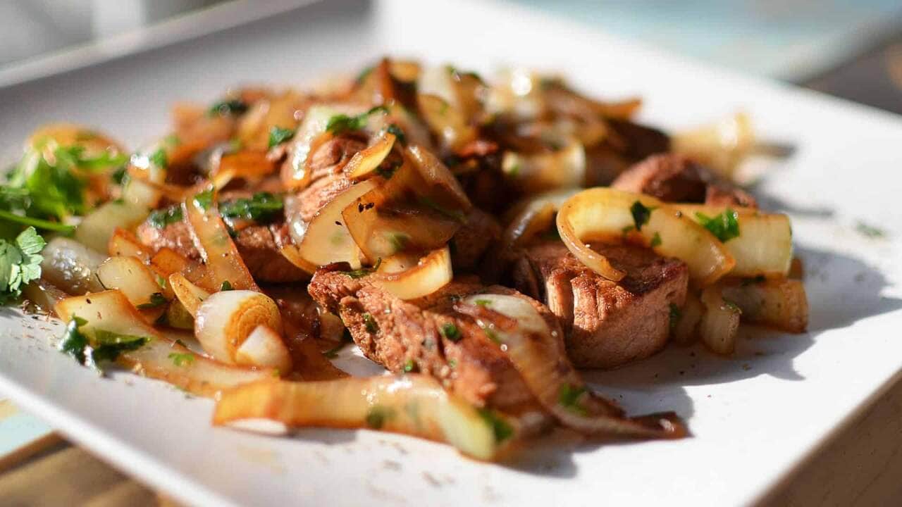 7. Sirva as iscas de alcatra quentes, acompanhadas do refogado de cebola.