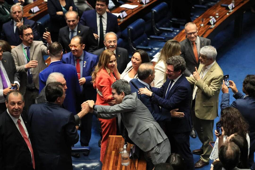 Brasília (DF) 08/11/2023 Sessão que votou em primeiro turno, a proposta de emenda à Constituição (PEC 45/2019) da reforma tributária. ( Senadores governistas comemoram a votação) . Foto Lula Marques/ Agência Brasil