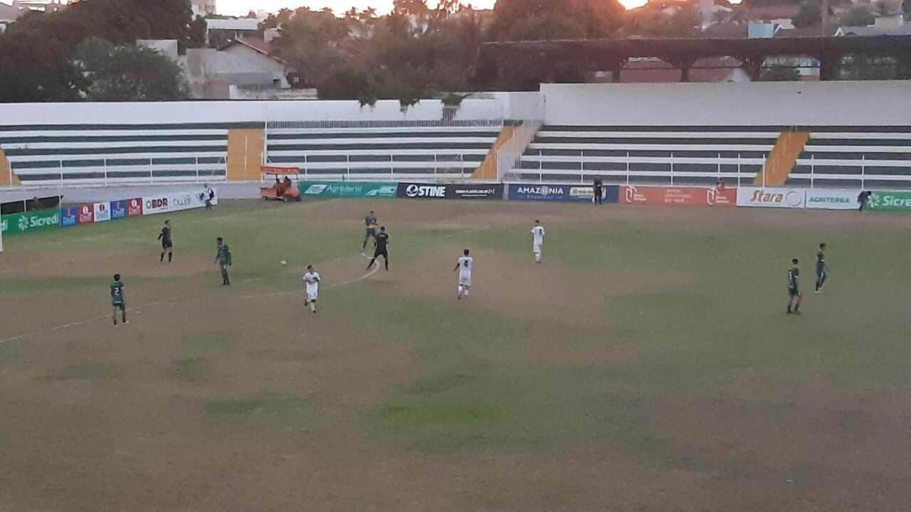 O jogo no Estádio Passo das Emas, em Lucas do Rio Verde, começou debaixo de sol forte. Mas isso não impediu as duas equipes de mostrarem disposição em campo.