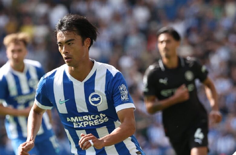 Apesar disso, a primeira boa chance foi do time da casa, quando Mitoma mandou um chute forte e Trafford espalmou. Isso aconteceu aos 18min.