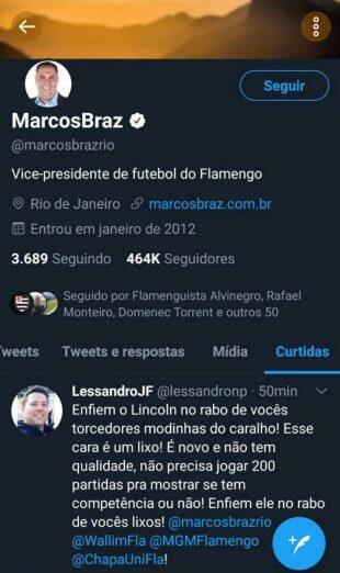 O Vice-Presidente de futebol do Flamengo agitou a torcida do Flamengo nas redes sociais no ultimo domingo (13) após curtir uma publicação de um torcedor pedindo a saída de Lincoln do time.