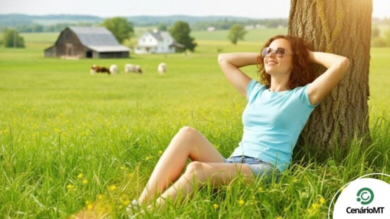 Mulher na natureza repouso total