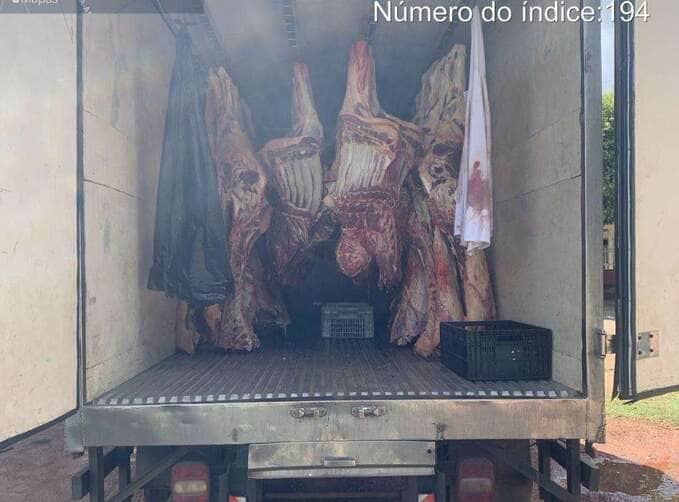 As equipes da PM e Indea identificaram que o montante superior a duas toneladas de carne seria distribuído clandestinamente em Várzea Grande e cidades próximas.