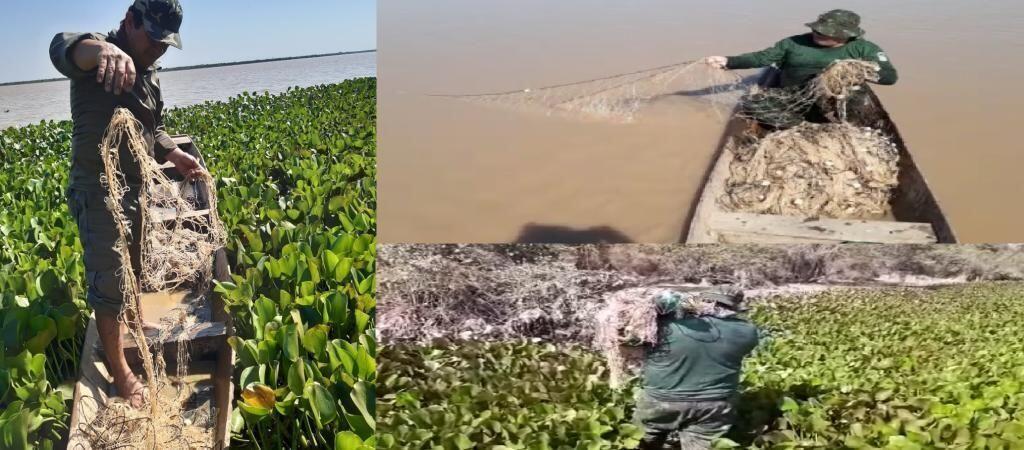 Batalhão Ambiental e Sema apreendem rede com mais de mil metros; uma das maiores já retiradas dos rios em MT