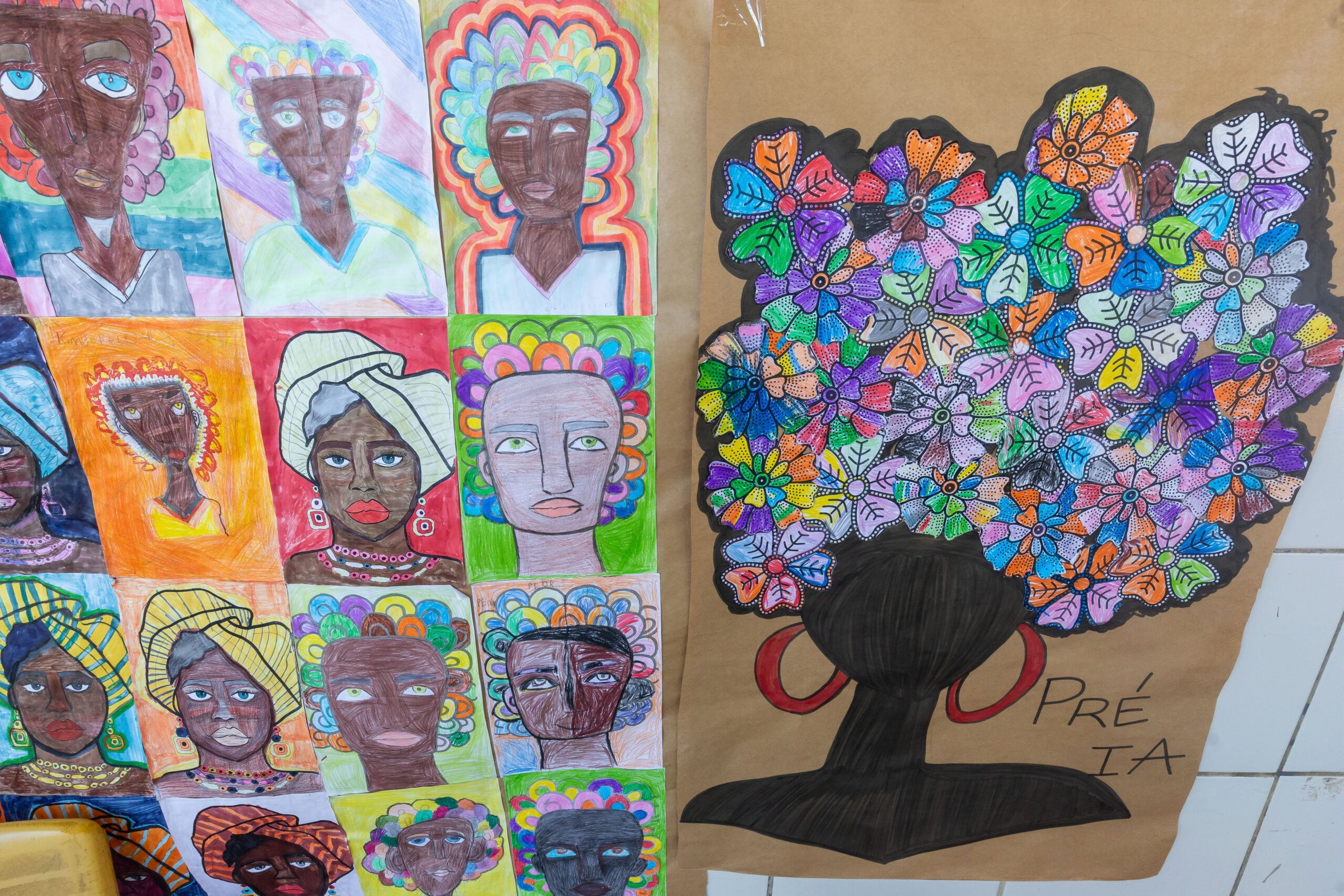 Um trabalho de valorização da beleza da mulher negra culminou numa exposição de arte produzida em cartolinas no pátio da Escola Municipal de Educação Básica (EMEB) Octayde Jorge da Silva, localizada no bairro Tancredo Neves em Cuiabá.