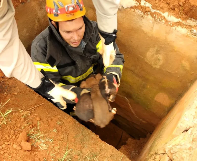 A equipe do Corpo de Bombeiros foi acionada por volta das 9h e, ao chegar ao local, constatou que os animais estavam presos sob a estrutura metálica. Para realizar o resgate com segurança, os bombeiros precisaram remover a tampa do bueiro.