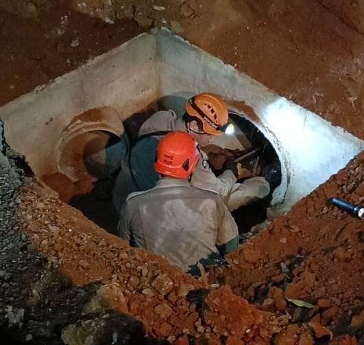 Devido ao estreito espaço da tubulação, os bombeiros não conseguiram entrar para resgatar a mulher diretamente. Então, foi necessário o uso de uma retroescavadeira para abrir uma passagem a cerca de 100 metros do local. A partir dessa abertura, a equipe da 14ª CIBM conseguiu ter acesso à vítima.