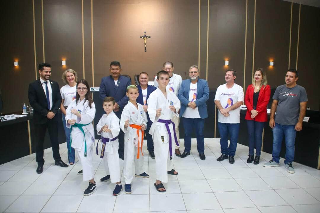 Oito atletas de Karatê-Do foram homenageados pela Câmara de Lucas do Rio Verde nesta segunda-feira (14). Eles receberam moção de aplausos pela participação no Campeonato Brasileiro de Karatê disputado em Mato Grosso. A etapa mato-grossense foi disputada em maio do ano passado.