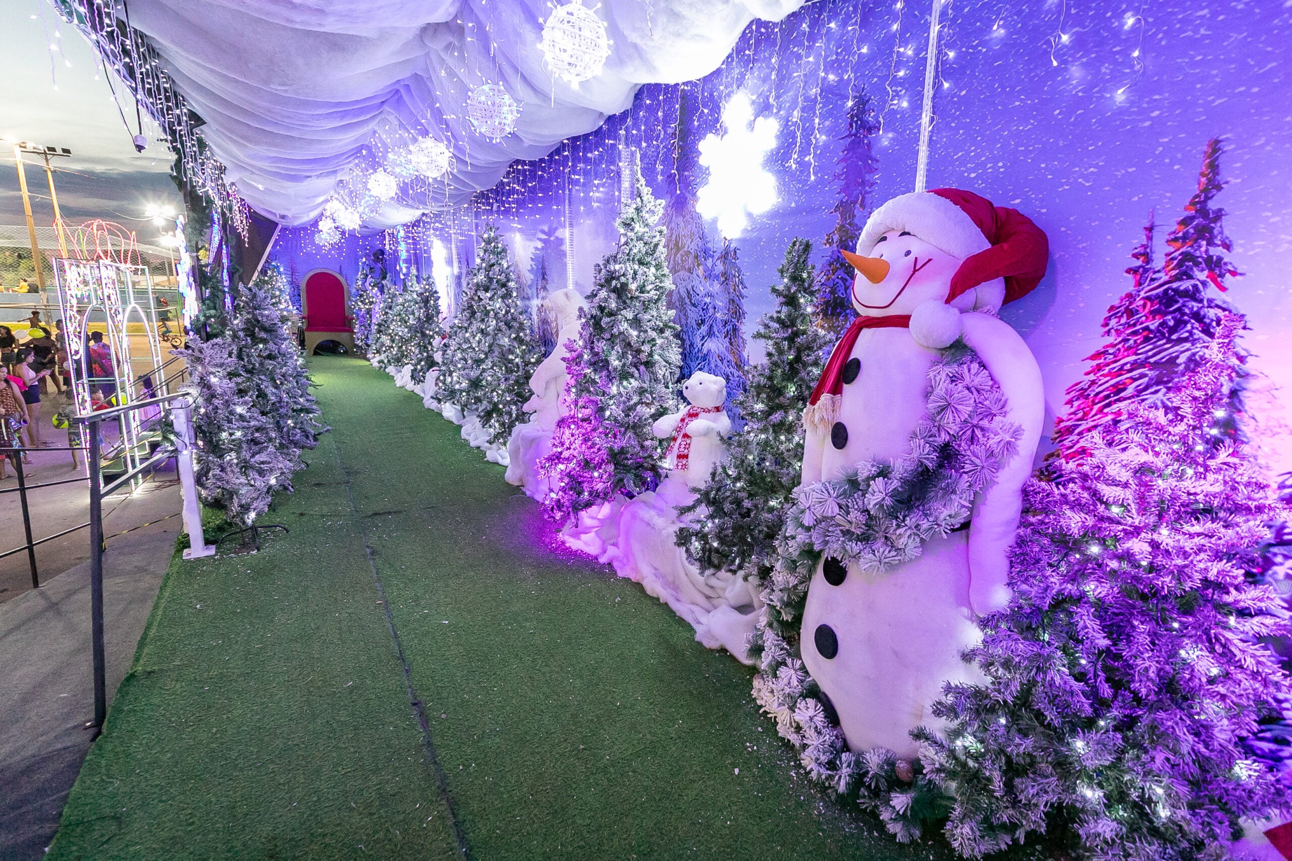 A noite foi costurada por pequenos encantos, quando o Papai Noel surgiu no horizonte acenou para o público e arrancou gritos de alegria. O momento mais aguardado veio com o show de neve, formado por espuminhas que caíam do alto e transformavam a praça em um cenário de fantasia, fazendo a alegria de centenas de crianças que corriam, pulavam e tentavam “pegar a neve” com as mãos.