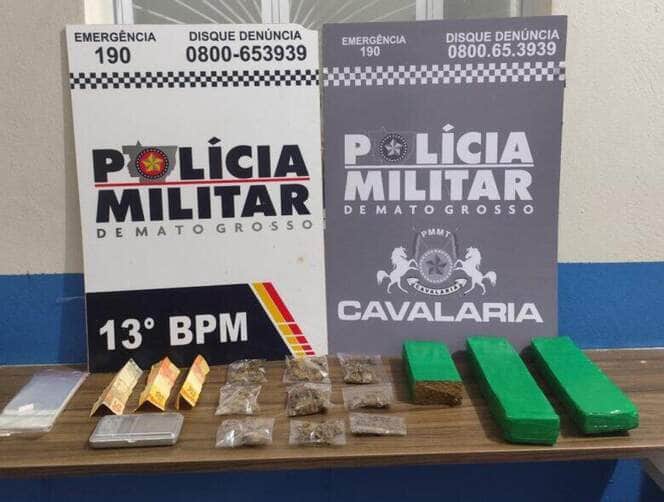 Policiais militares da Cavalaria do 13º Batalhão realizaram duas prisões por tráfico de drogas neste sábado (17.5) em Lucas do Rio Verde. As ações distintas resultaram na apreensão de tabletes e porções de maconha, além de materiais utilizados para embalar e vender os entorpecentes.