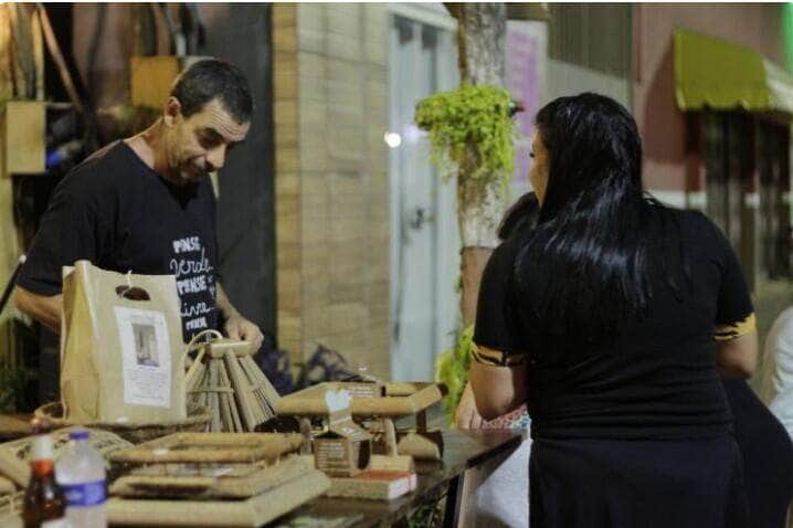 • Feira de produtos sustentáveis: expositores com itens artesanais e ecológicos;