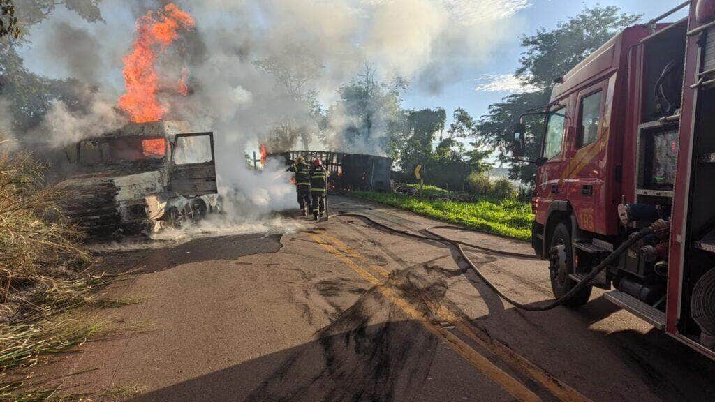 No local, os bombeiros encontraram a carreta separada do caminhão e estacionada às margens da rodovia. Imediatamente, iniciaram o combate às chamas que afetavam a carga de algodão transportada pela carreta.