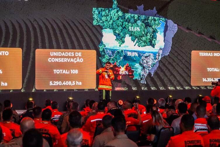 Durante a apresentação, o comandante mostrou que Mato Grosso, com 903 mil km² — área maior que França e Alemanha juntas, é um gigante em desafios para a prevenção e combate ao fogo.