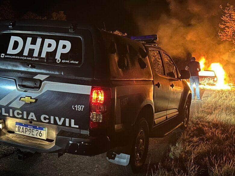 O carro estava em chamas, após uma pane elétrica. O motorista confessou que estava dando apoio aos ladrões. O homem foi preso.