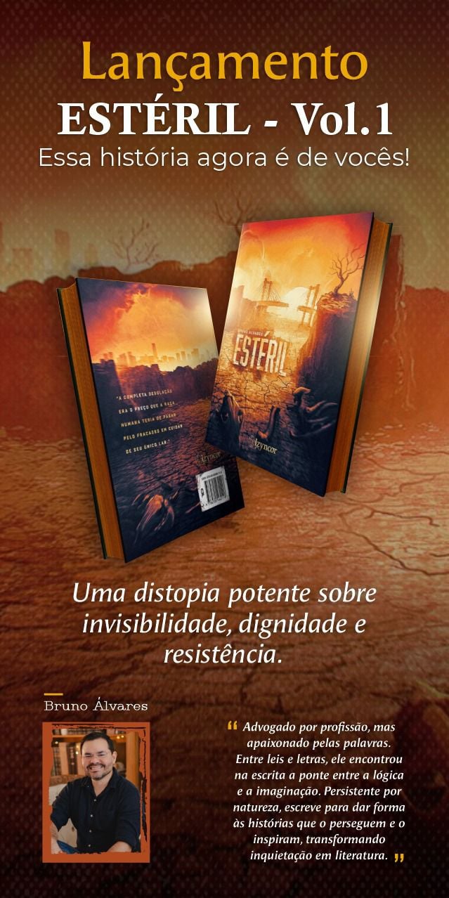 Com “Estéril”, Bruno Álvares entrega um romance que mescla ficção especulativa, tensão dramática e crítica social, projetando o leitor para um futuro árido e perturbador, mas surpreendentemente próximo da realidade. A obra é uma viagem entre o medo pessoal do autor, a urgência ambiental e a complexidade das escolhas humanas em um mundo à beira do colapso.