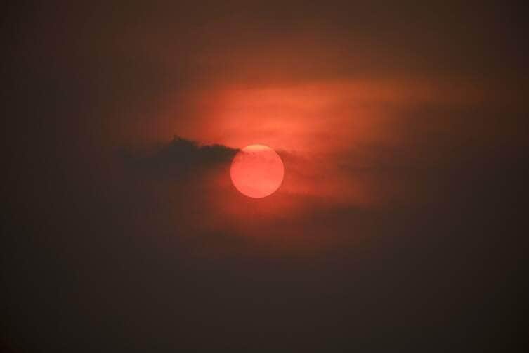 Porto Jofre (MT) 17/11/2023 – Fim de tarde com sol vermelho por conta da fumaça do incêndio florestal que atinge o Pantanal. Foto: Joédson Alves/Agência Brasil