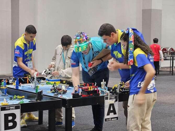 Na mesa da competição, eles testam suas habilidades e o espírito de equipe com um robô imponente, feito de peças de Lego, esbanjando design eficiente e adequado às provas. Para este desafio, a garotada adaptou ao robô uma engrenagem frontal, capaz de realizar mecanismos baixos de maneira ágil e assertiva.