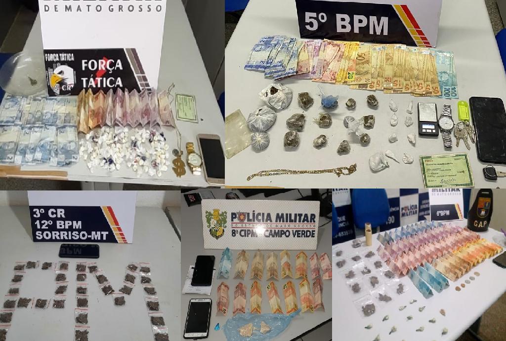 Policiais militares prenderam na segunda e terça-feira (07 e 08.12) cinco homens e apreenderam um adolescente por tráfico de droga. Em Rondonópolis foram duas ocorrências.