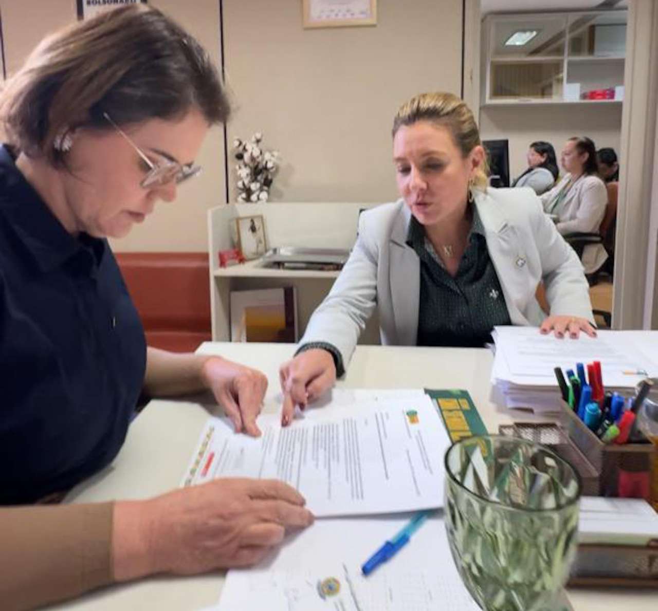 Depois, a prefeita se encontrou com a deputada federal Coronel Fernanda (PL), quando apresentou projetos como a construção da Casa do Autista, construção do batalhão da Guarda Municipal e regularização fundiária.