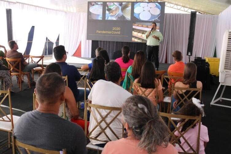 Silas Vicente, médico em Cuiabá, um dos palestrantes do evento, veio à Sinop, à convite da Sedec, para compartilhar o sucesso que obteve com a produção familiar de queijos finos. Segundo ele, a ideia surgiu durante o período de pandemia, após o fechamento dos pequenos laticínios que recebiam a produção leiteira dele. “[…] não tínhamos onde vender esse leite e este começou a ser descartado e aquilo me incomodou demais, e ao invés de descartar o leite, optei por começar a estudar e fabricar um queijo próprio, e até aquela época, não tinha feito nenhum queijo e comecei a fabricar o queijo, para evitar de jogar o leite fora”.