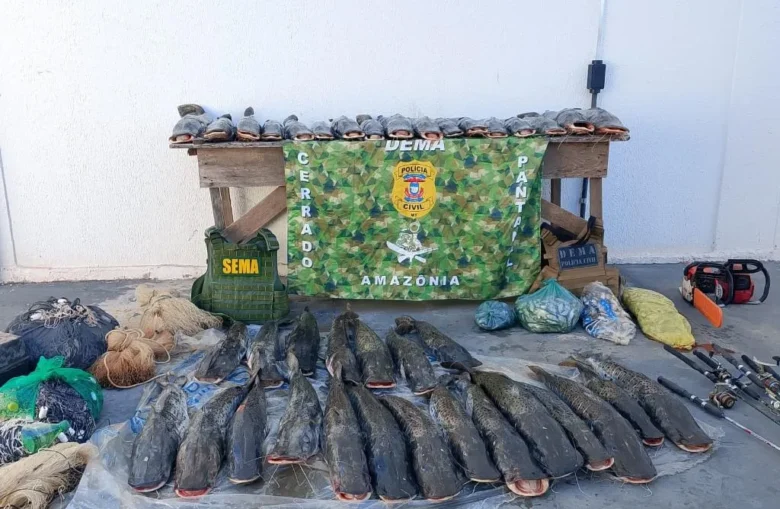 Durante a madrugada, os agentes identificaram movimentações suspeitas nos fundos da residência. No local, foram encontrados os peixes armazenados, além de materiais típicos da pesca predatória, como redes, tarrafas, molinetes, sacolas com lambaris e motosserras sem documentação. Todo o material foi recolhido e encaminhado às autoridades competentes para os procedimentos legais.