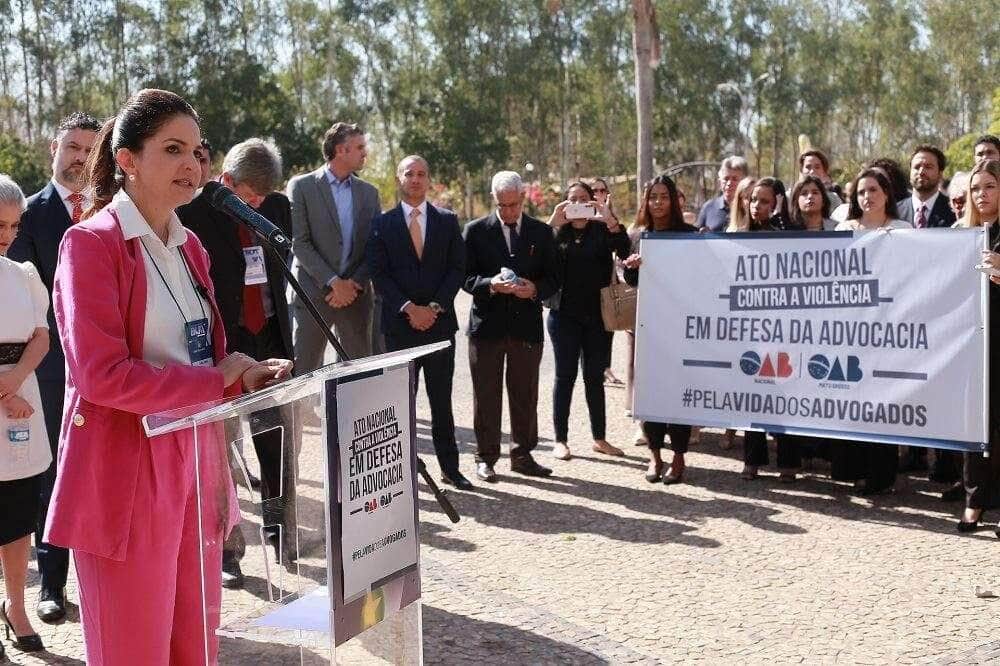 A presidente da Ordem dos Advogados do Brasil – Seccional Mato Grosso (OAB-MT), Gisela Cardoso, conduziu nesta quinta-feira (11) o Ato Nacional Contra a Violência e em Defesa da Advocacia, realizado em conjunto com o Conselho Federal da Ordem dos Advogados do Brasil (CFOAB).