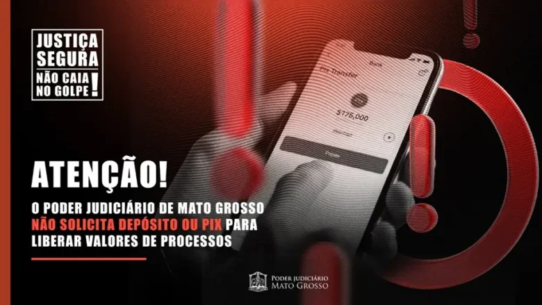 O primeiro material da campanha, disponível no Instagram do TJMT, foca no golpe do falso advogado. A peça gráfica orienta a população a desconfiar de contatos com essa promessa enganosa, enfatizando que o Poder Judiciário de Mato Grosso não solicita depósito ou transferência via PIX para liberar valores de processos.